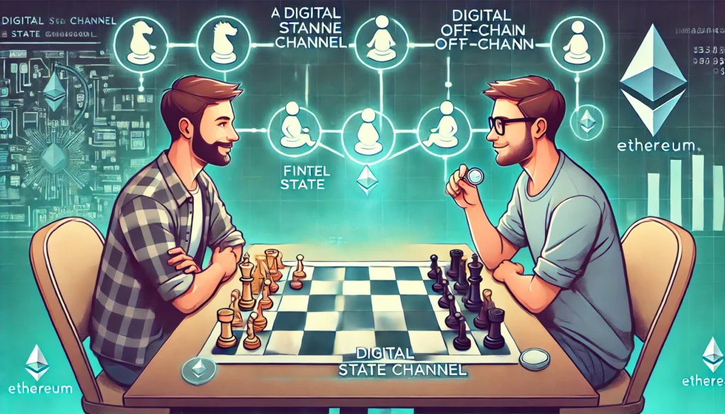 Suppose you and a friend would like to play chess, but you would rather not pay an Ethereum transaction fee for every move made on the blockchain. Instead, you could open a state channel, creating a private channel between you two where you can play the game off-chain.
