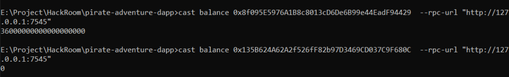 • By running the following command check if you can interact with Ganache blockchain with foundry framework